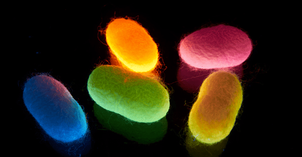 SILK WORMS THAT PRODUCE vibrantly coloured and luminescent silks have been created by scientists in Singapore. The resulting fibre offers a cheap way to circumvent the dying process and may even have medical applications.
