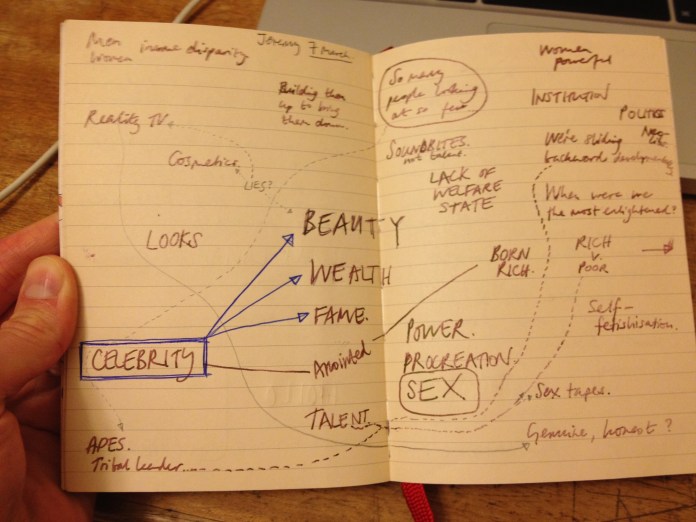 He’s put his knife and fork down now, the bloody steak too heavy to go with this weightlessness of sadness, of realisation. Understanding that now, her alphabet is being harvested, preyed upon. Mine is too much, too. Lamb shank sits on its bone, hugging its lifelong, final ride.