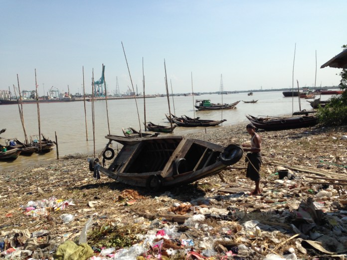 The enterprising grandmother couldn’t be in a better spot for the business – around her home, across Dala and further, spreading through Yangon and beyond – is a goldmine of plastic rubbish, a free resource for the enterprise she manages for Italian humanitarian organisation, CESVI. Plastic pollution sits in layer upon layer along roads, in fields, floating on the muddy banks of the Ayarwaddy and mingled amongst the lily pads of the near-permanently flooded plains to the south of the capital city. A staggering, multicoloured sea of discarded wrappers, bottles, plastic bags, flip-flops, cans, lids and packaging seems to have collected in and around Myanmar’s largest city. It is no exaggeration, that, in shared areas of some of Yangon’s poorer communities, there is more rubbish than clear space. The rainwater they rely on for survival becomes a plastic soup as soon as it hits the land.